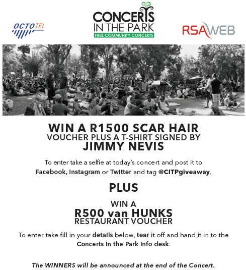 Get there. Come straight from the beach or wherever. Come any how; just get there and experience it. The whole event is carried by the Cape Town City Council, The Executive Majors Office and other community concious companies that have wisely chosen to support this happy event. Also the various service providers, the artists, the sound engineers, designers even the homeless who erect & take down everything on every concert day, all of these people providing are their services at reduced rates for the love of happiness and music really!