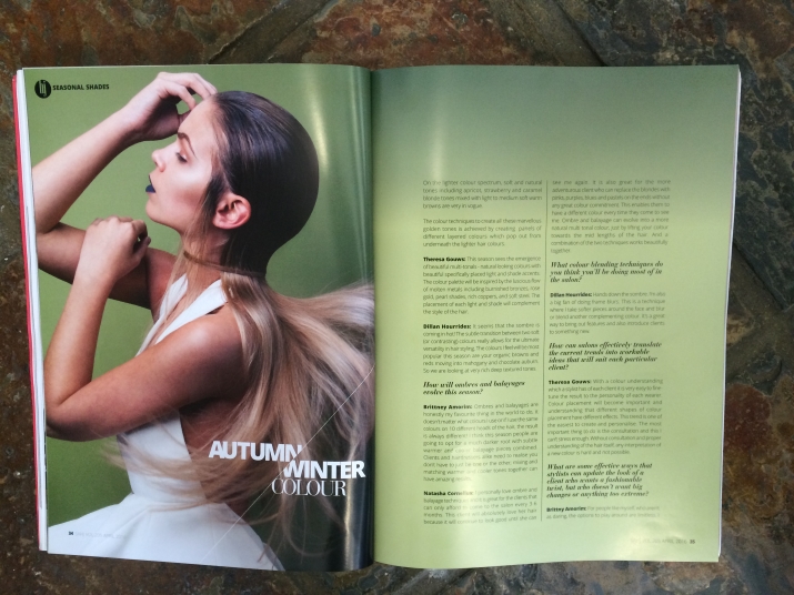 Unfortunately we can’t reproduce the interview here, (technology restrictions can you believe!) but we CAN suggest that you either get your hands on a copy of the magazine, or even better, get down to our salon where either Brittny or any other of our stylists on the floor will be MORE than willing to let you know the latest developments with regards to trending hair colours for this year.