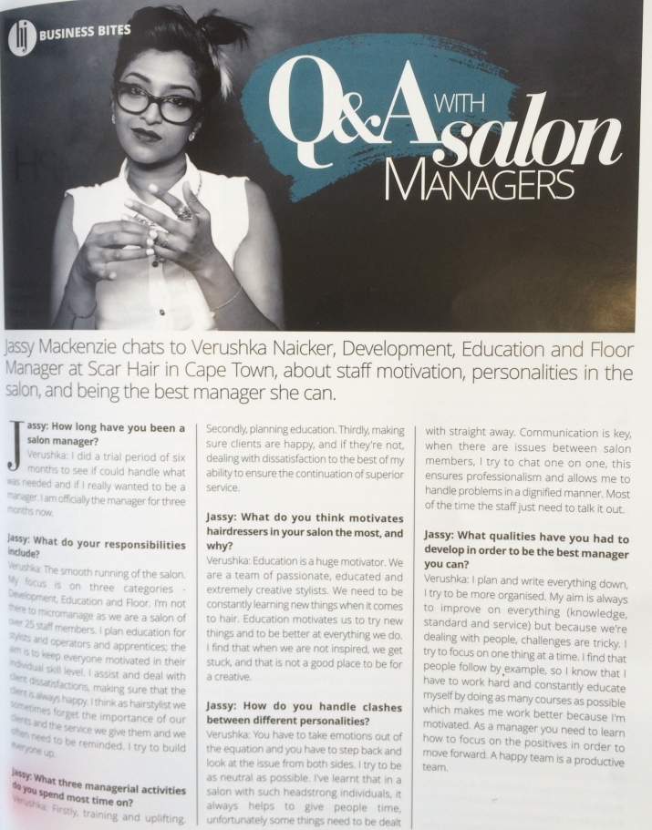 We currently have an education slot for an hour and a half every Wednesday, where reps and educators come in to teach us new things about hair itself and product knowledge. I am not a micro manager because personally I don’t think it’s needed, but I am there to deal with issues that (luckily) hardly occur.